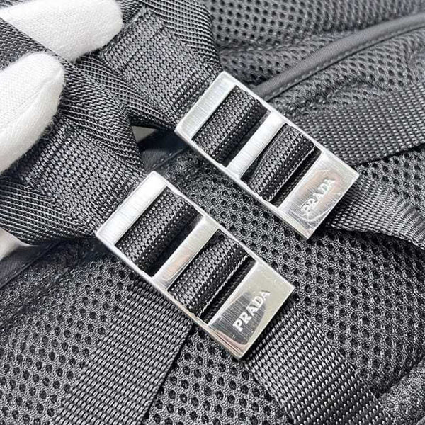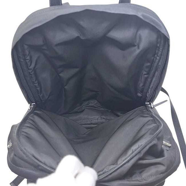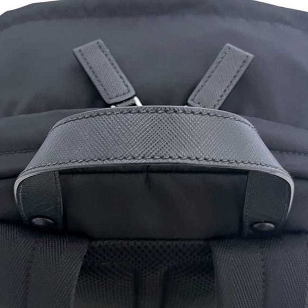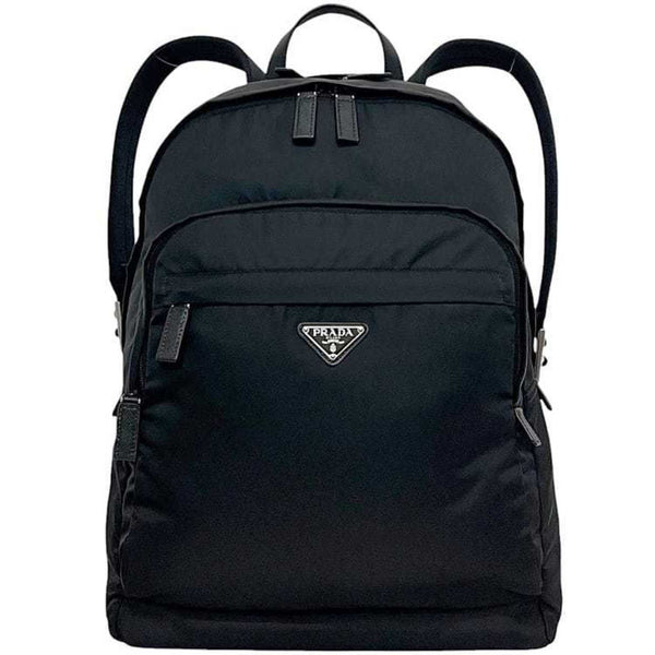 Prada Backpack f-24160 Black NERO Tessuto 2VZ048 Unused Nylon Saffiano Leather 158 PRADA with Triangular Plate for Men and Women