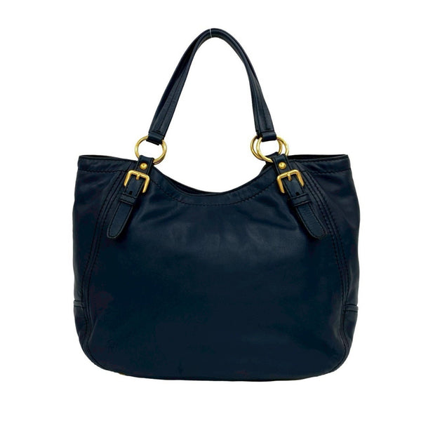 PRADA Prada Gold Logo Hardware Leather Genuine Tote Bag Handbag Semi-Shoulder Navy Blue 33-10