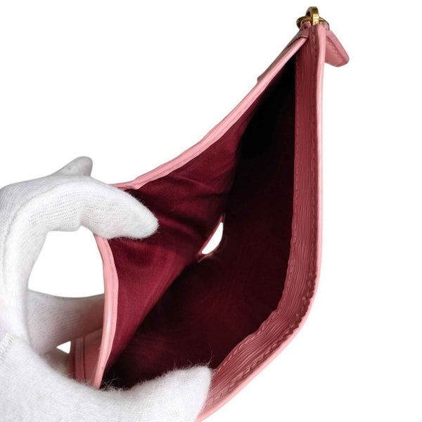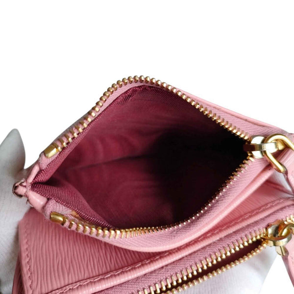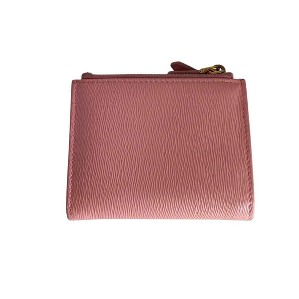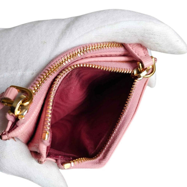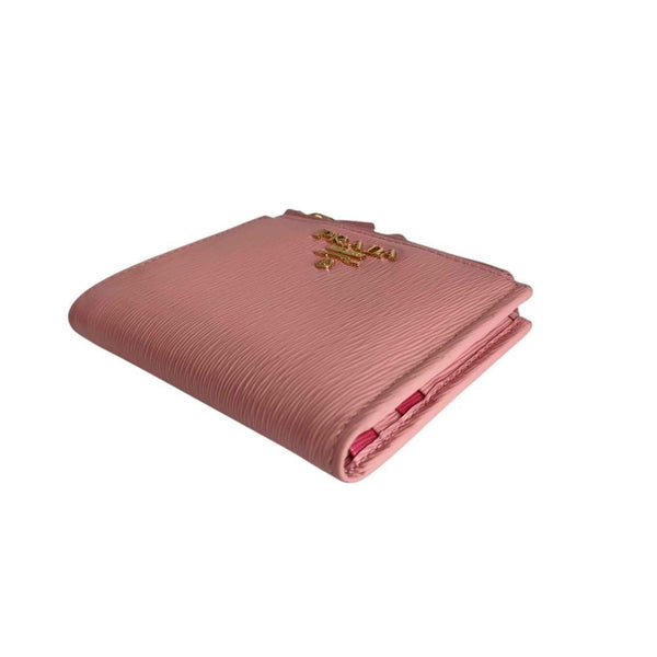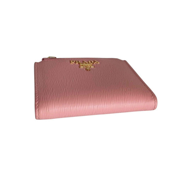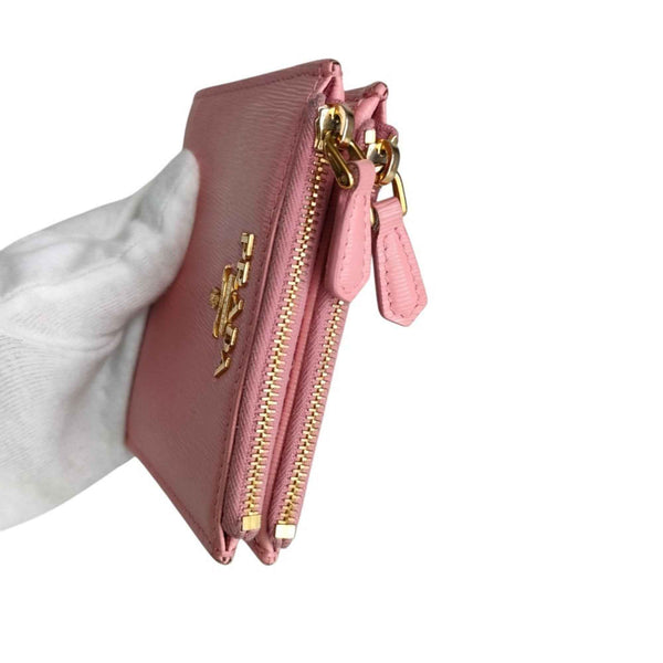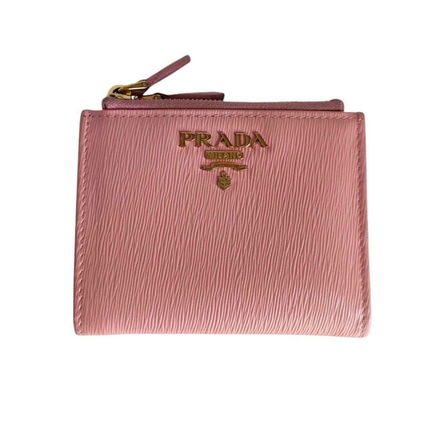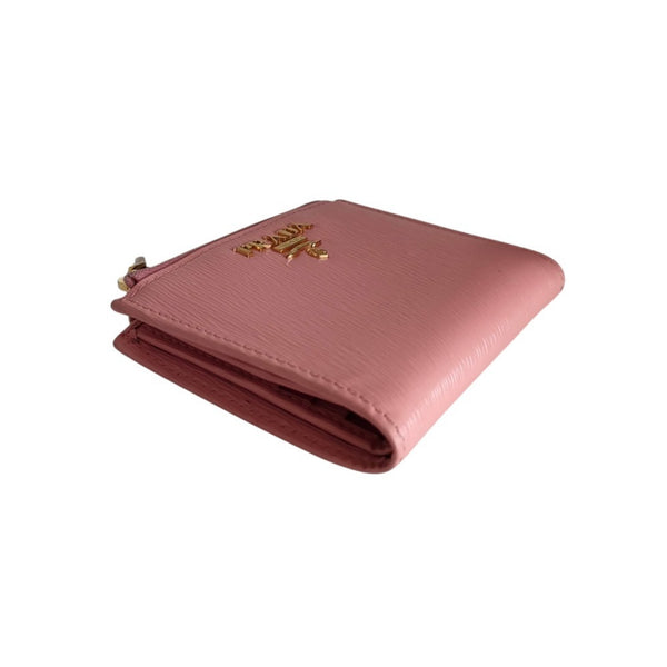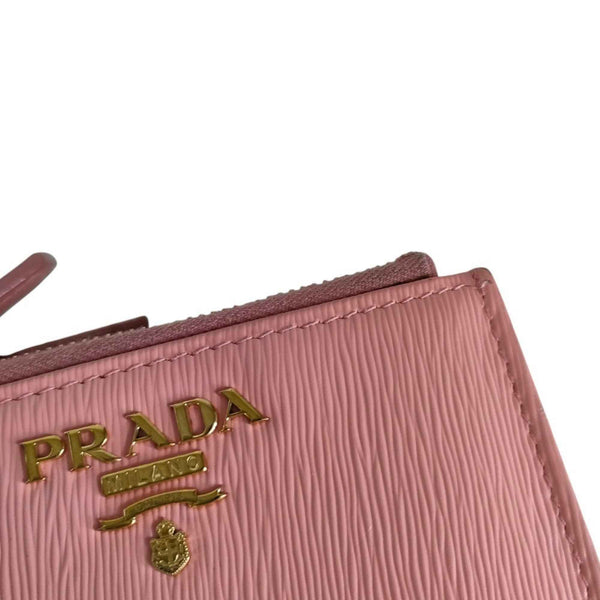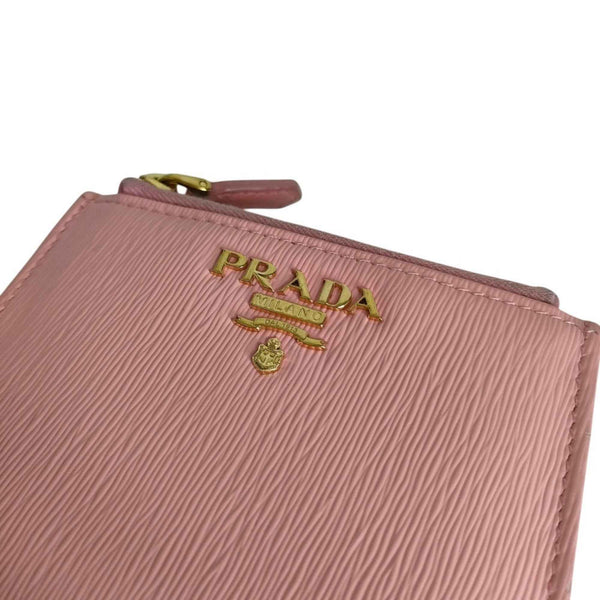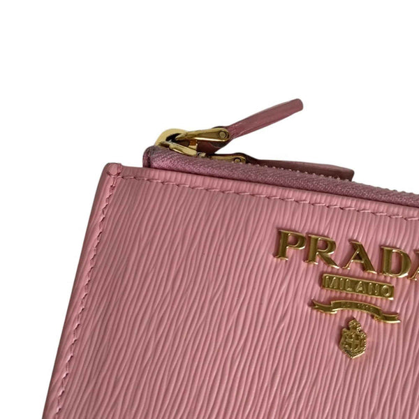 PRADA Prada Leather Vitello Move Metal Logo Double Zipper Compact Wallet Pink Women\'s