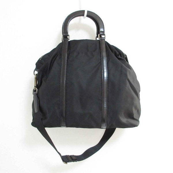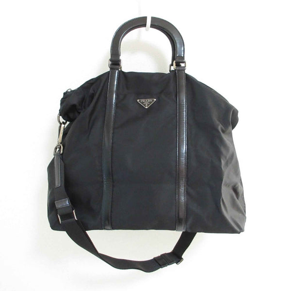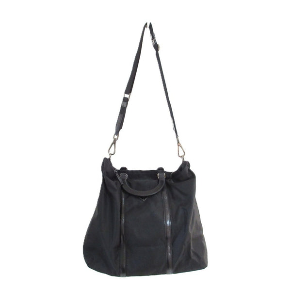 PRADA Prada Nylon and Leather 2-Way Shoulder Bag Tote Black with Silver Hardware for Men Women