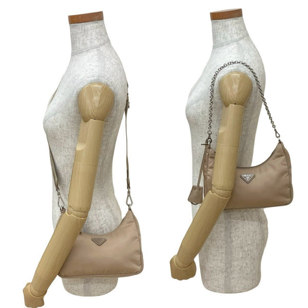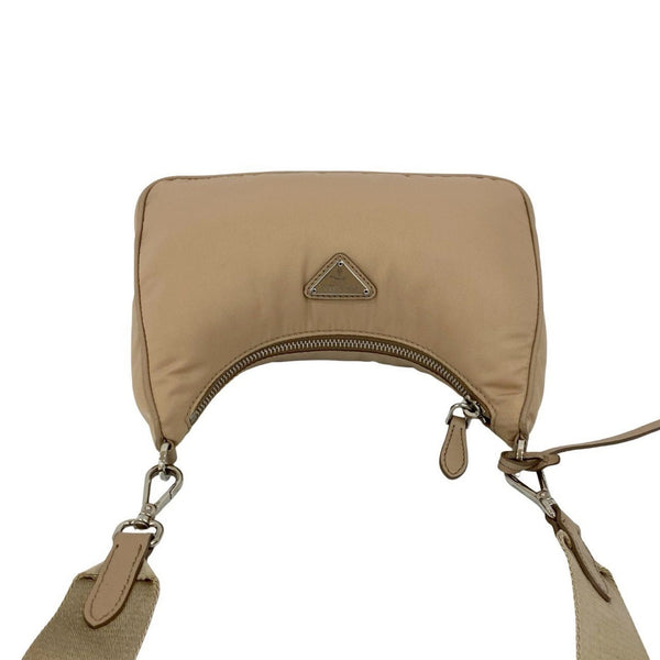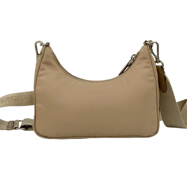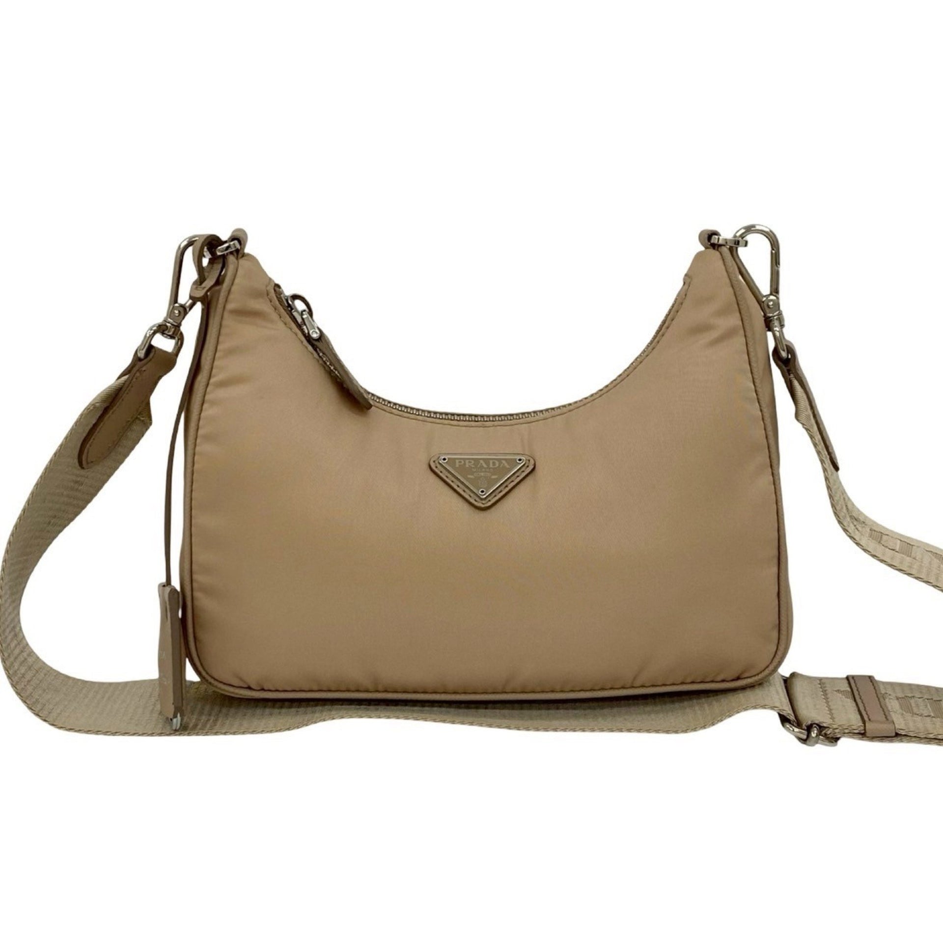 Prada Re-Edition Triangle Logo Hardware Nylon and Saffiano Leather Semi-Shoulder Bag, Beige, 24566
