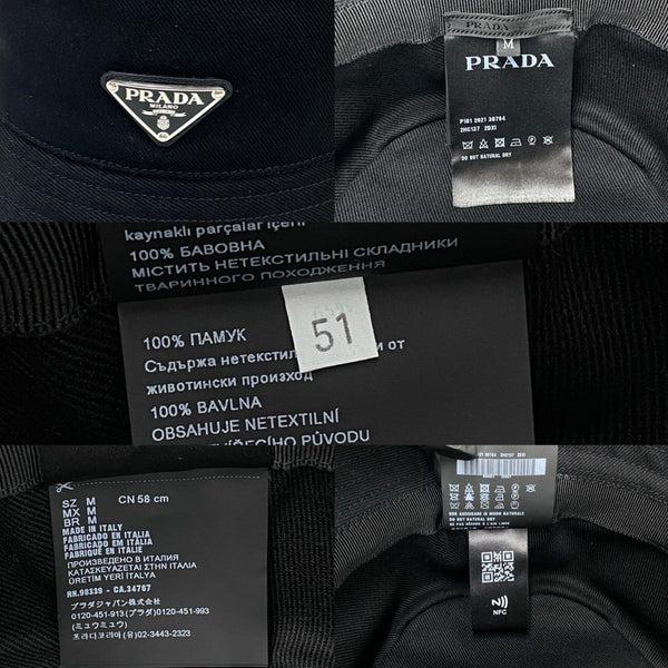 PRADA Re-Nylon Bucket Hat with Triangle Logo and Metal Hardware, Cotton, Size M, Men\'s, Black, 62141