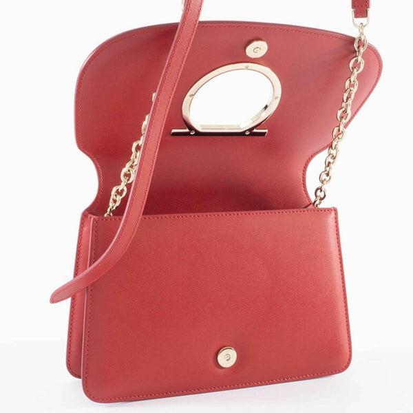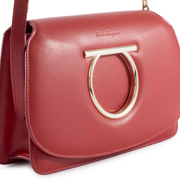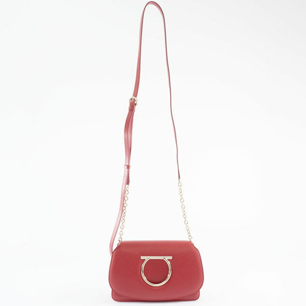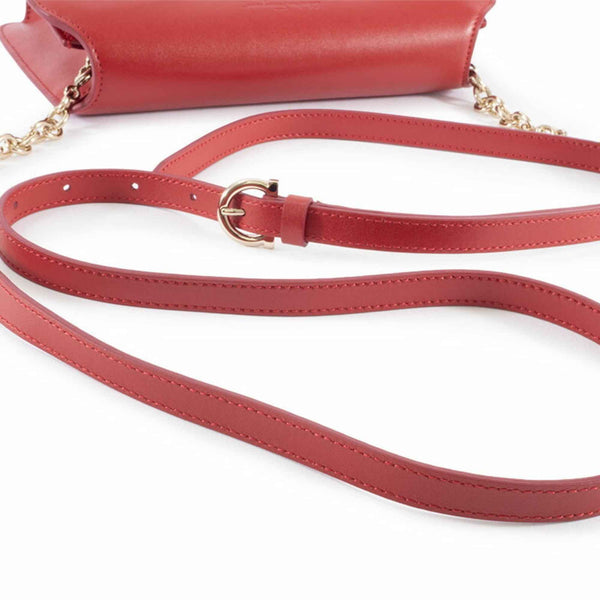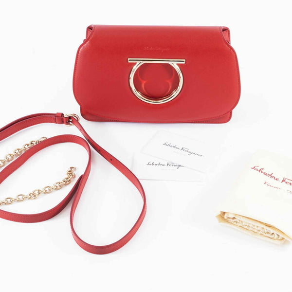 Salvatore Ferragamo camera bag/shoulder bag AU-22 D293 in red leather with Gancini strap for women.