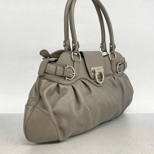 Salvatore Ferragamo Gancini Leather Handbag, Gray, Women\'s