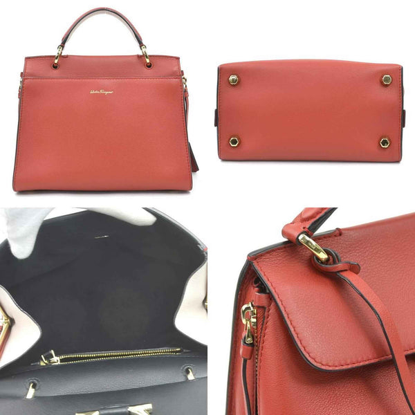 Salvatore Ferragamo Gancini Leather Handbag Shoulder Bag in Red and Ivory for Women (h31556a)