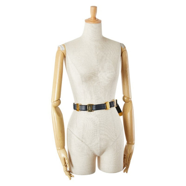 Salvatore Ferragamo Vara Belt in Black and Gold Plated Leather for Women