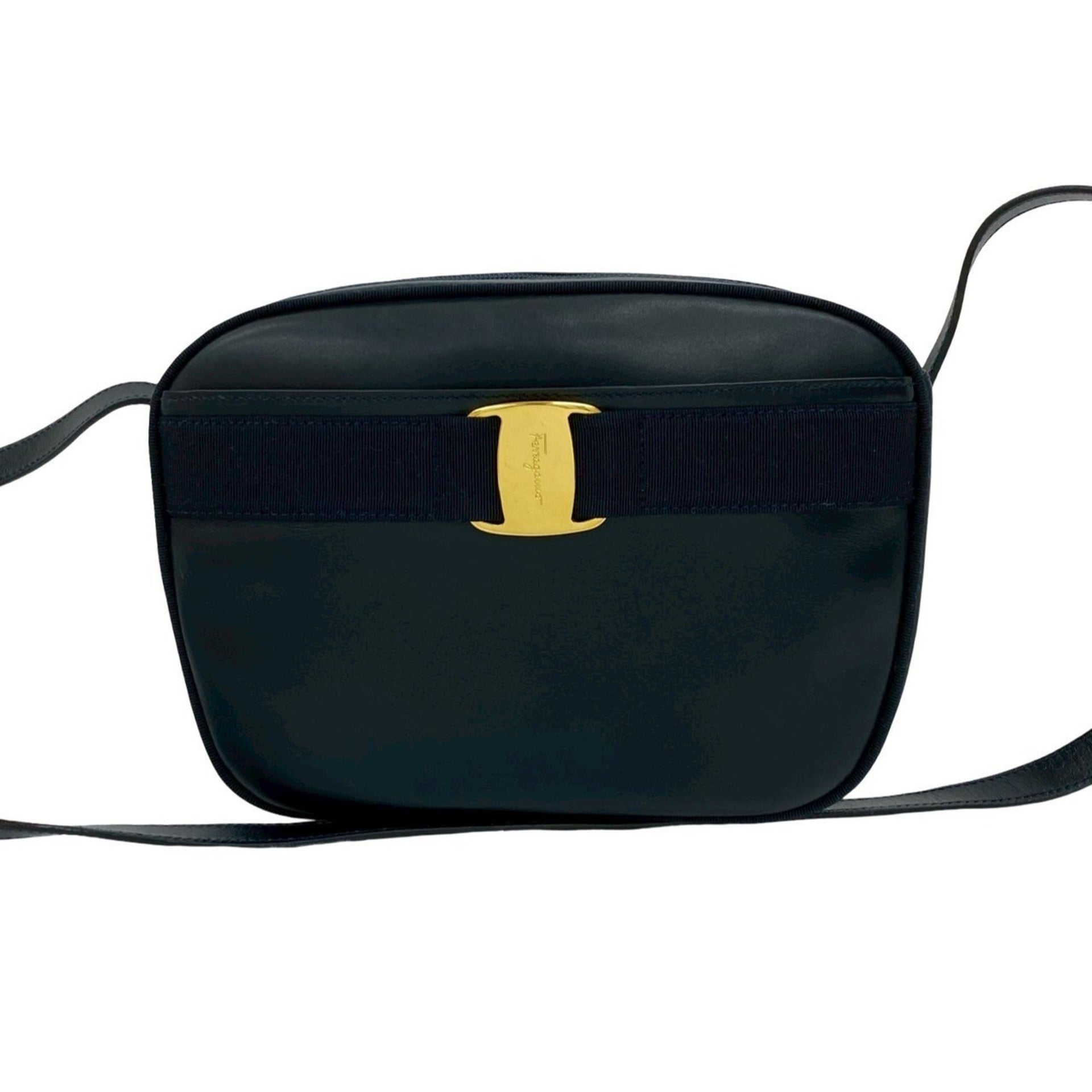Salvatore Ferragamo Vara genuine leather shoulder bag with ribbon and hardware, navy blue, 39127