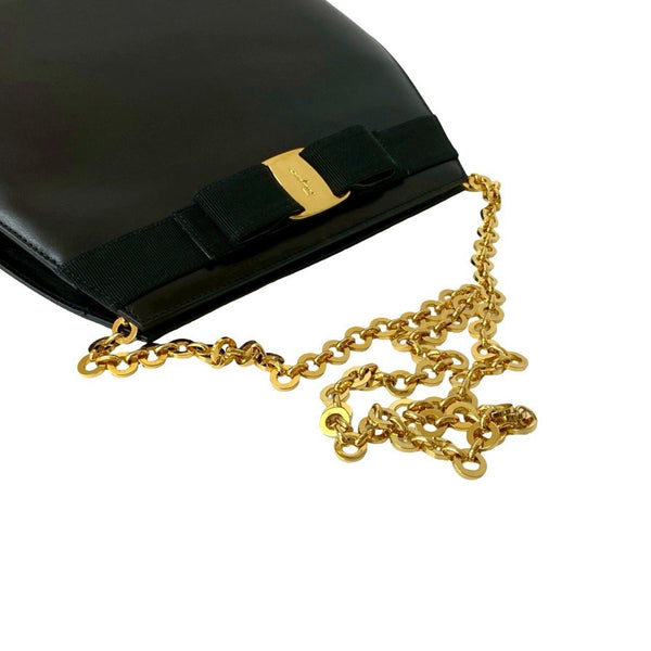Salvatore Ferragamo Vara Ribbon shoulder bag in black calf leather with genuine chain, 17184