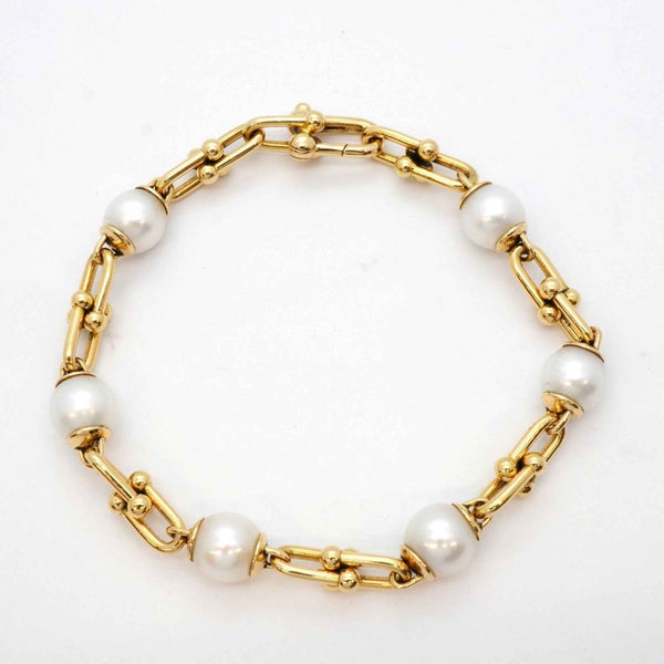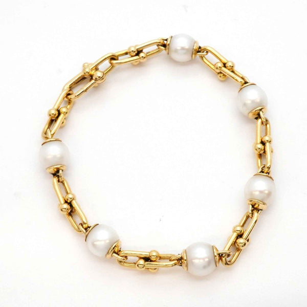 Tiffany bracelet hardware 18KYG yellow gold white pearl women\'s