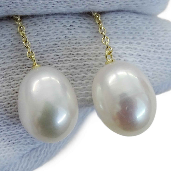 Tiffany & Co. Elsa Peretti Pearl by the Yard Earrings for Women, 750YG Yellow Gold, Polished, with Chain, Binaural Jewelry.