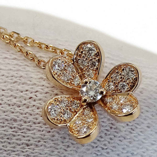Van Cleef & Arpels necklace for women, brand 750PG diamond frivole mini pink gold jewelry, polished