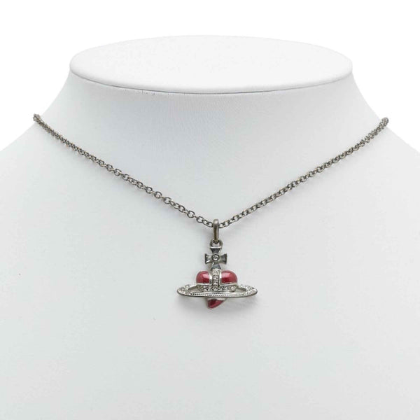 Vivienne Westwood Diamante Heart Orb Rhinestone Necklace in Silver and Red Metal for Women