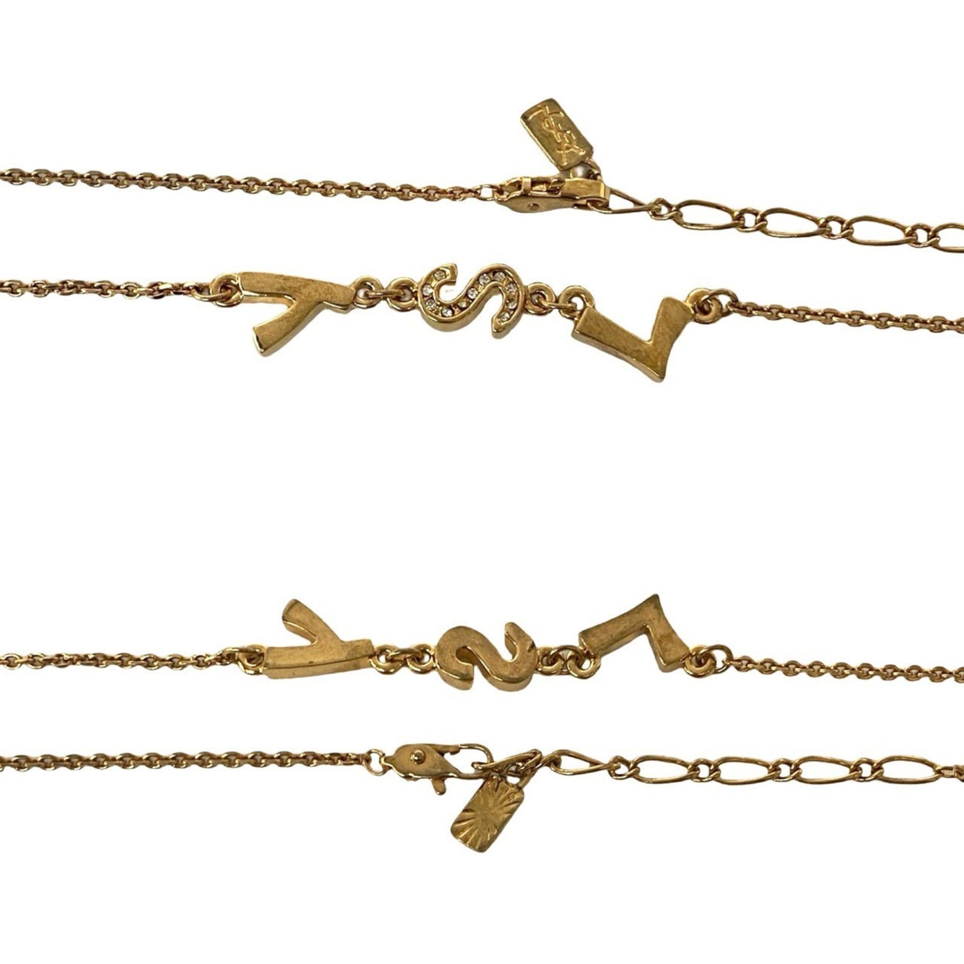 Yves Saint Laurent YSL logo necklace pendant choker accessory gold 49245