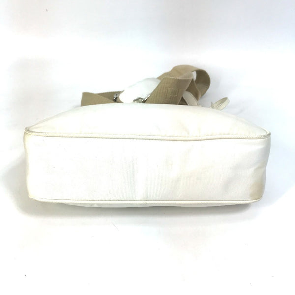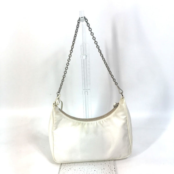 PRADA 1BH204 Triangle Logo Plate Re-Edition 2005 Nylon Shoulder Bag with Pouch and Chain, White, Women\'s