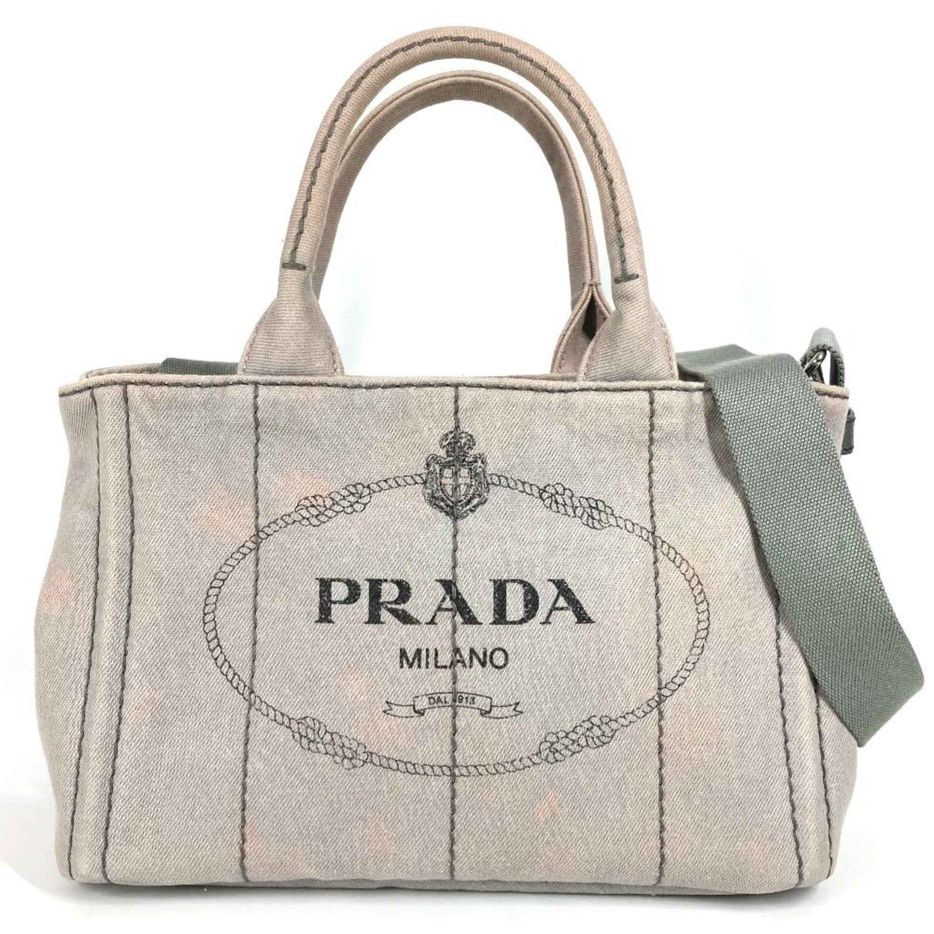 PRADA Canapa Logo 2-Way Bag, Shoulder Crossbody Tote Handbag, Canvas, Women\'s, Gray