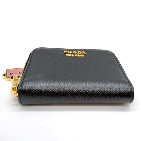 Prada coin purse, nero black Saffiano leather, round, robot motif, women\'s, 1MM268 PRADA