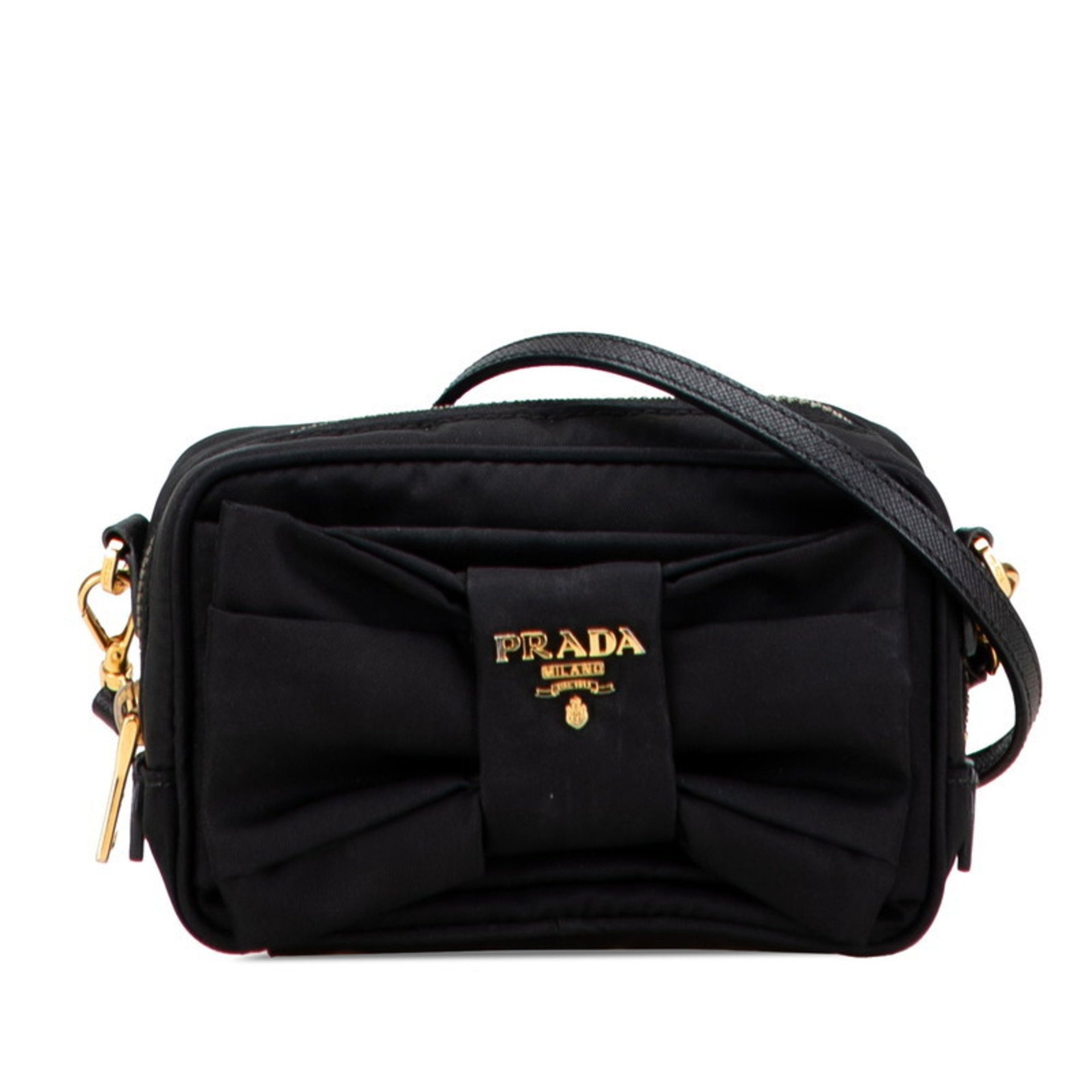 Prada Logo Ribbon Shoulder Bag Pouch Black Nylon Women\'s PRADA