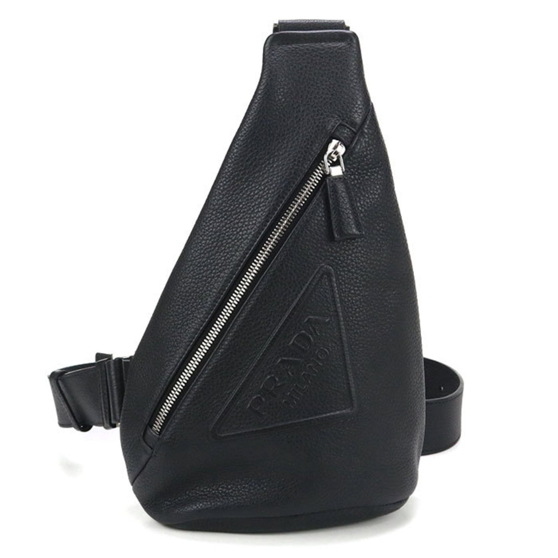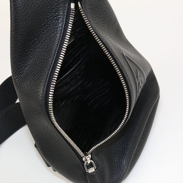 PRADA Prada Body Bag PR95208 in Vitello Dino Leather, 2VZ098 2BBE F0002, One-Shoulder Black, Men\'s