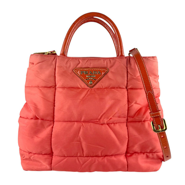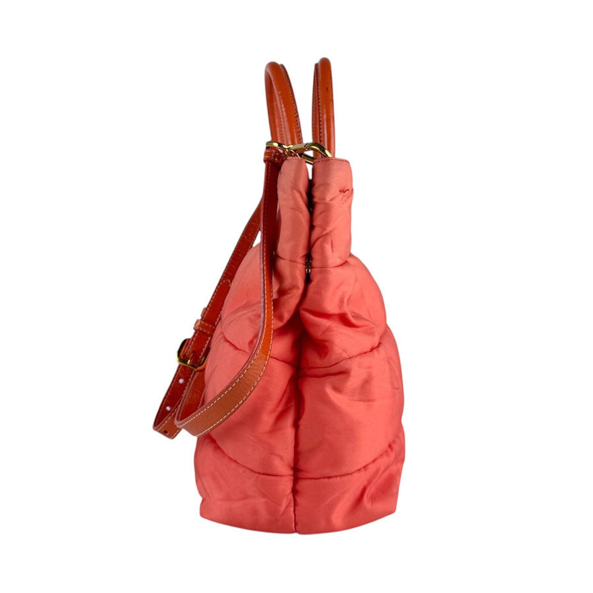 Prada PRADA Handbag Shoulder Bag Nylon Patent Leather Orange Gold Women\'s Z7452