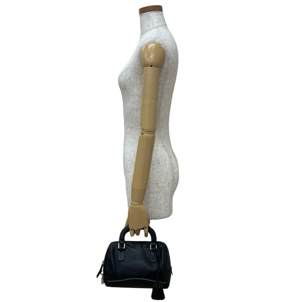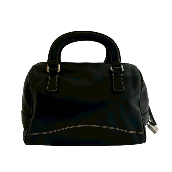 PRADA Prada logo engraved hardware leather stitching handbag mini Boston bag black 22639