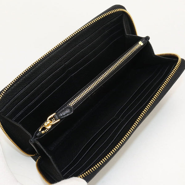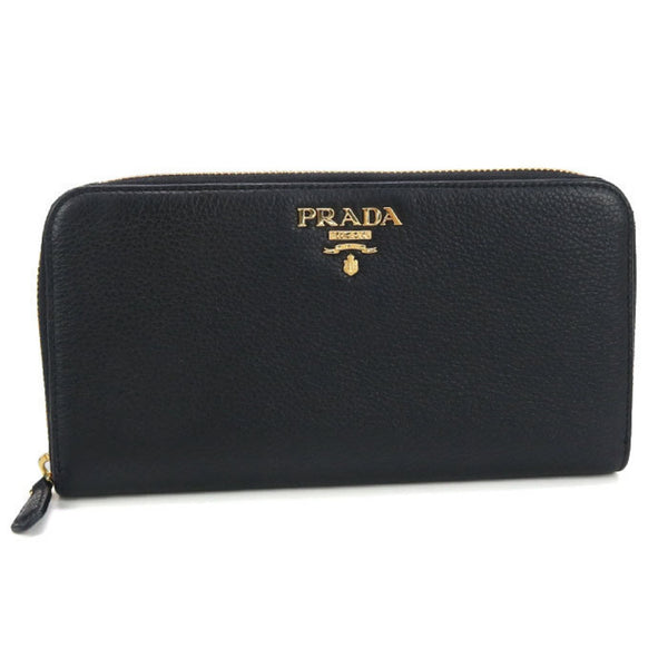 PRADA Prada Long Wallet with Round Zipper PR95198 in Vitello Leather (1ML506) Black