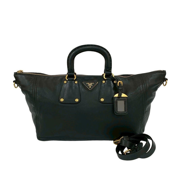 PRADA Prada Triangle Logo Hardware Leather 2-Way Handbag, Mini Boston Bag, Tote Shoulder Black 71440