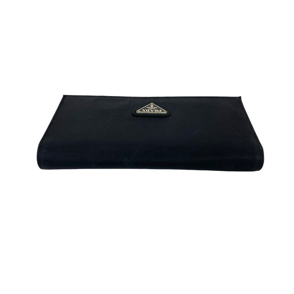 PRADA Prada Triangle Logo Hardware Nylon and Saffiano Leather Bifold Wallet, Black, 10313