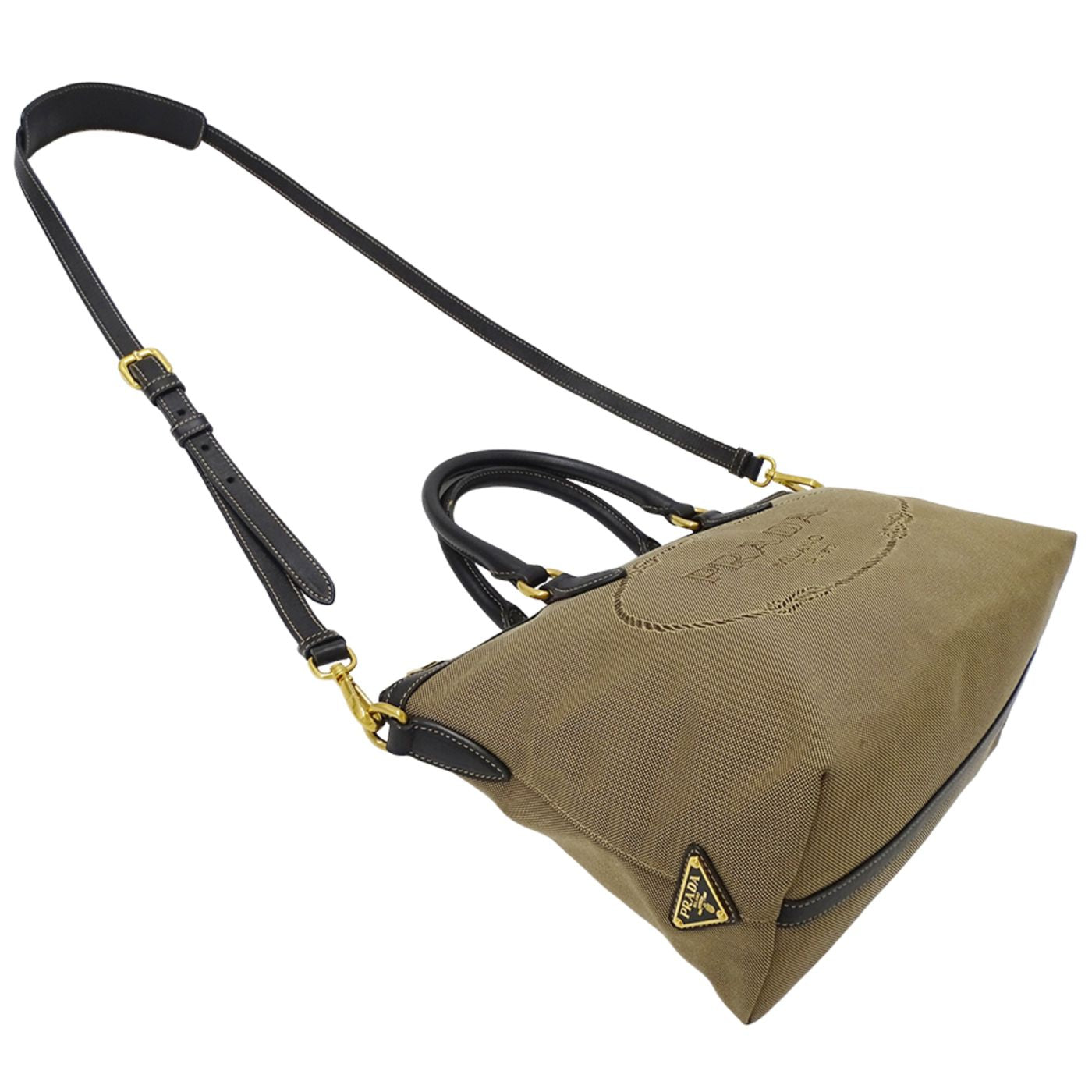 Prada PRADA Women\'s Brand Tote Bag, Handbag, Shoulder 2-Way, Logo Jacquard Canvas, Beige, Black