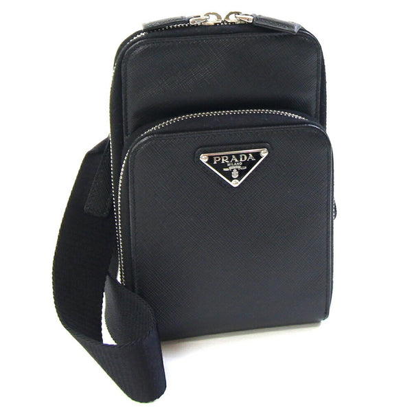 Prada Shoulder Bag 2ZH126 Black Saffiano Leather Pochette Crossbody for Men and Women
