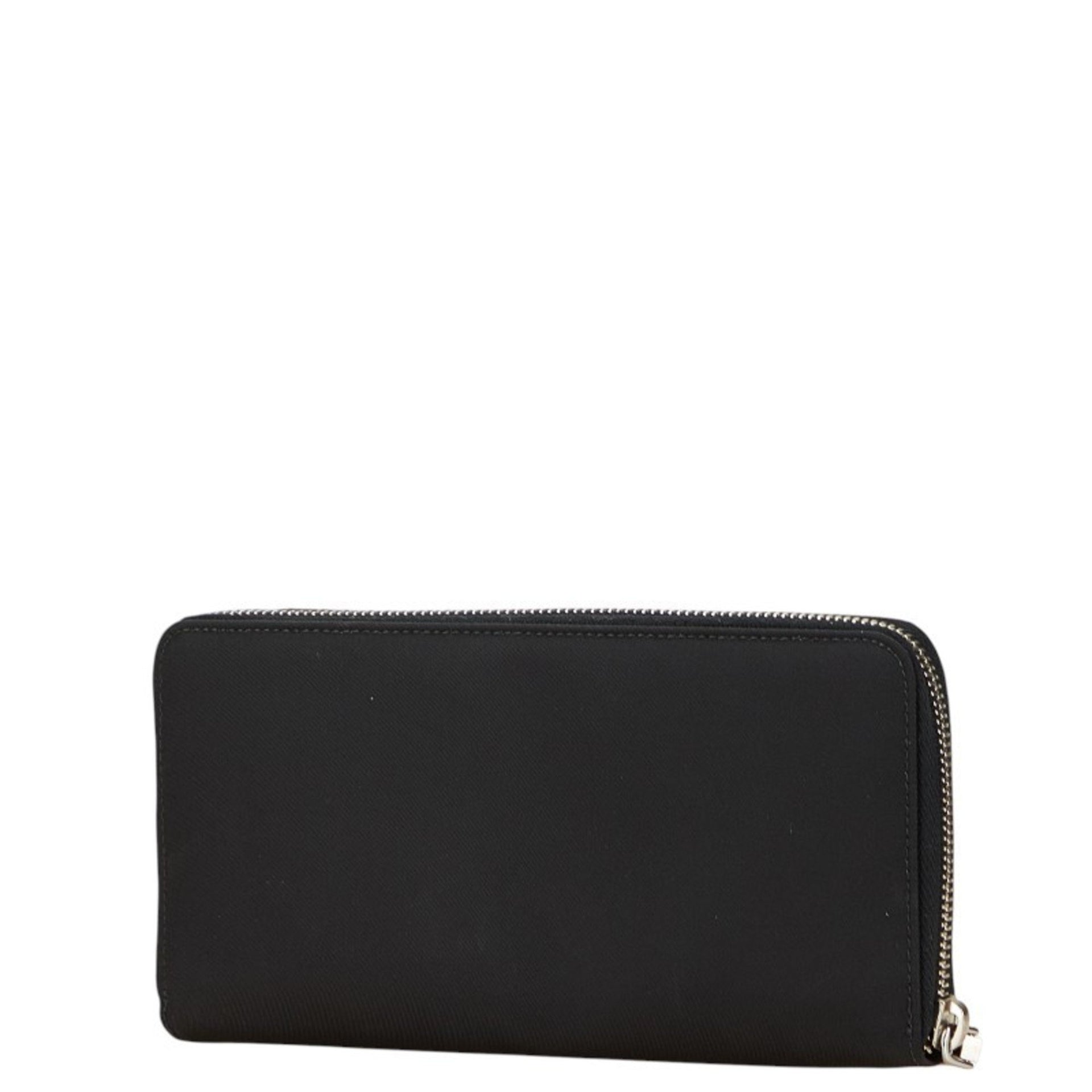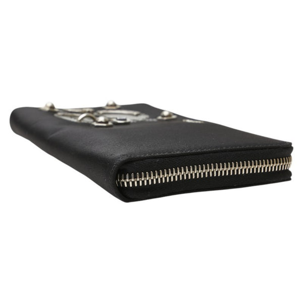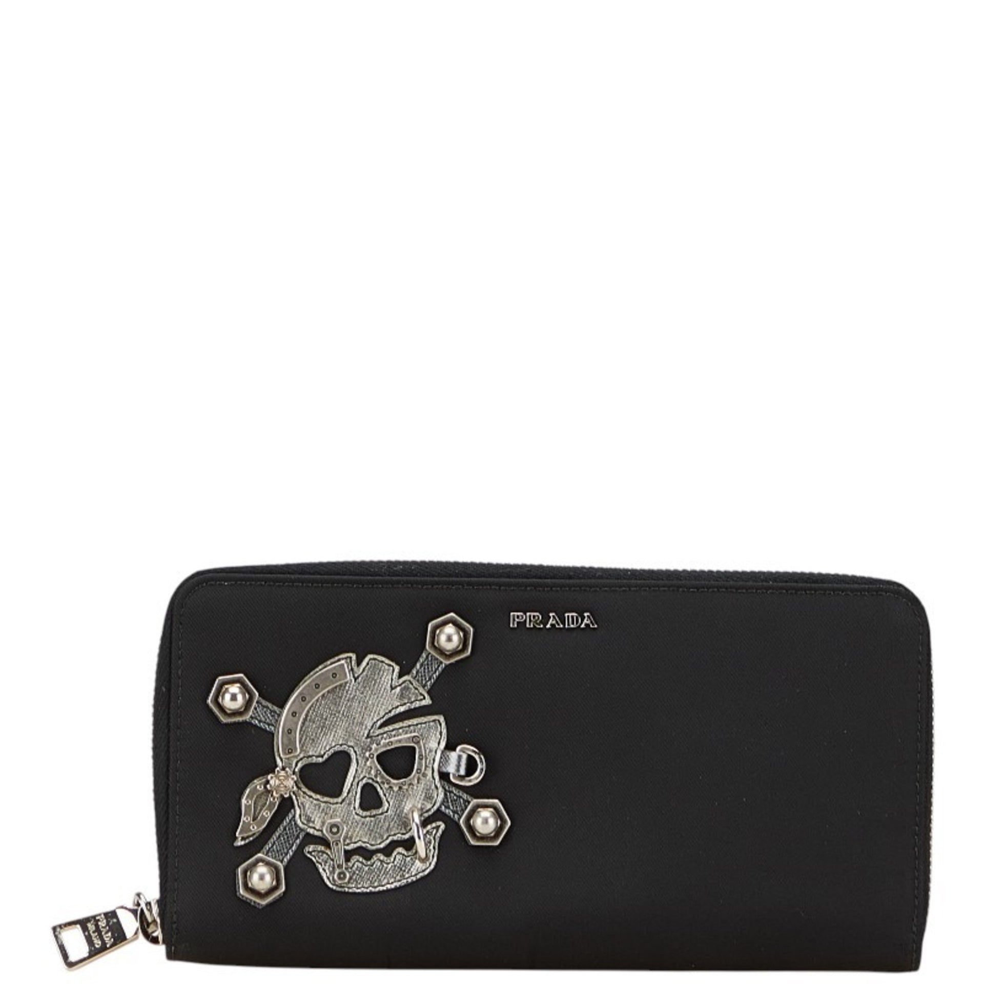 Prada skull long wallet with round zipper, 2M1264, black, silver, nylon, and leather. Men\'s.