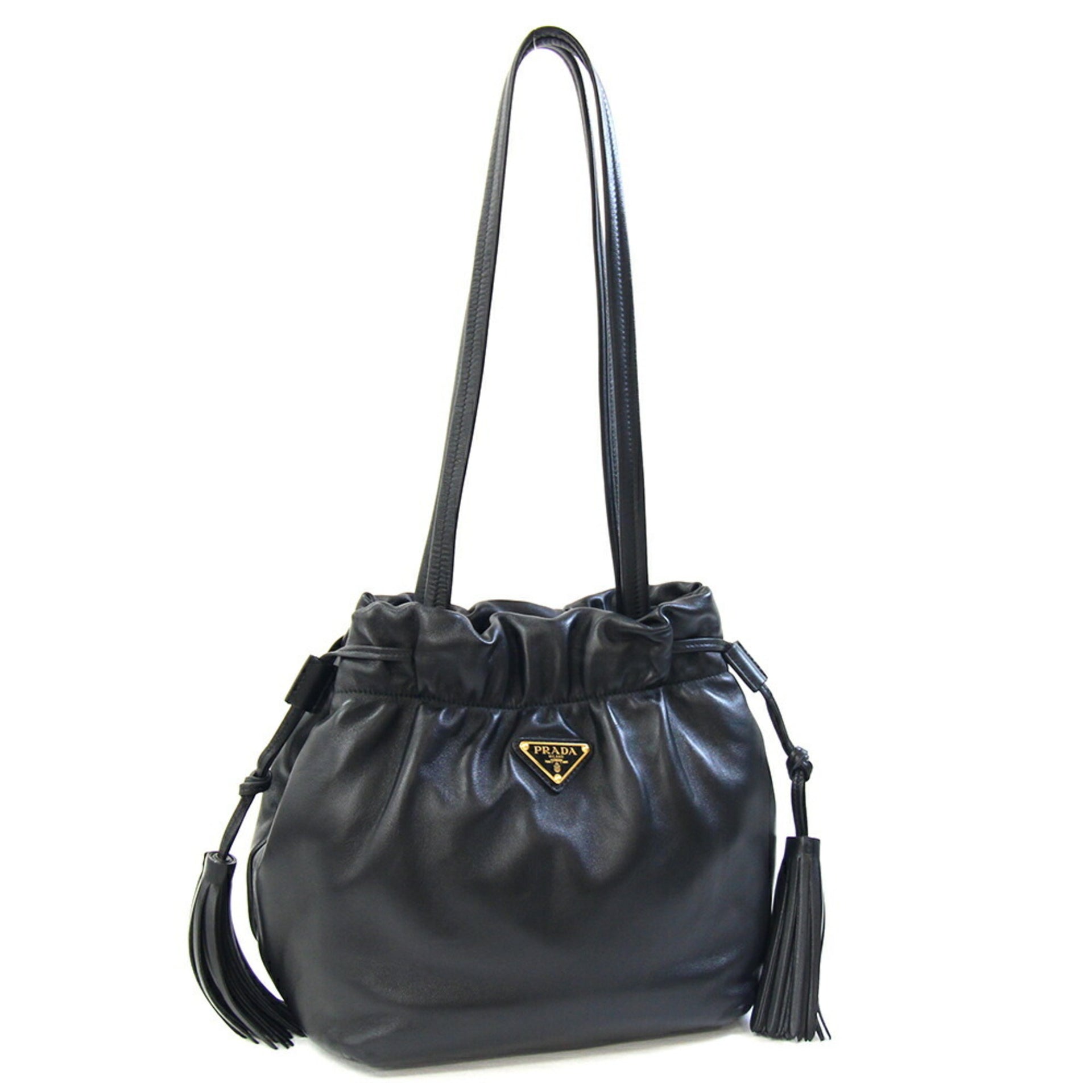 Prada Tote Bag 1BG541 Black Leather Nappa Tassel Women\'s PRADA