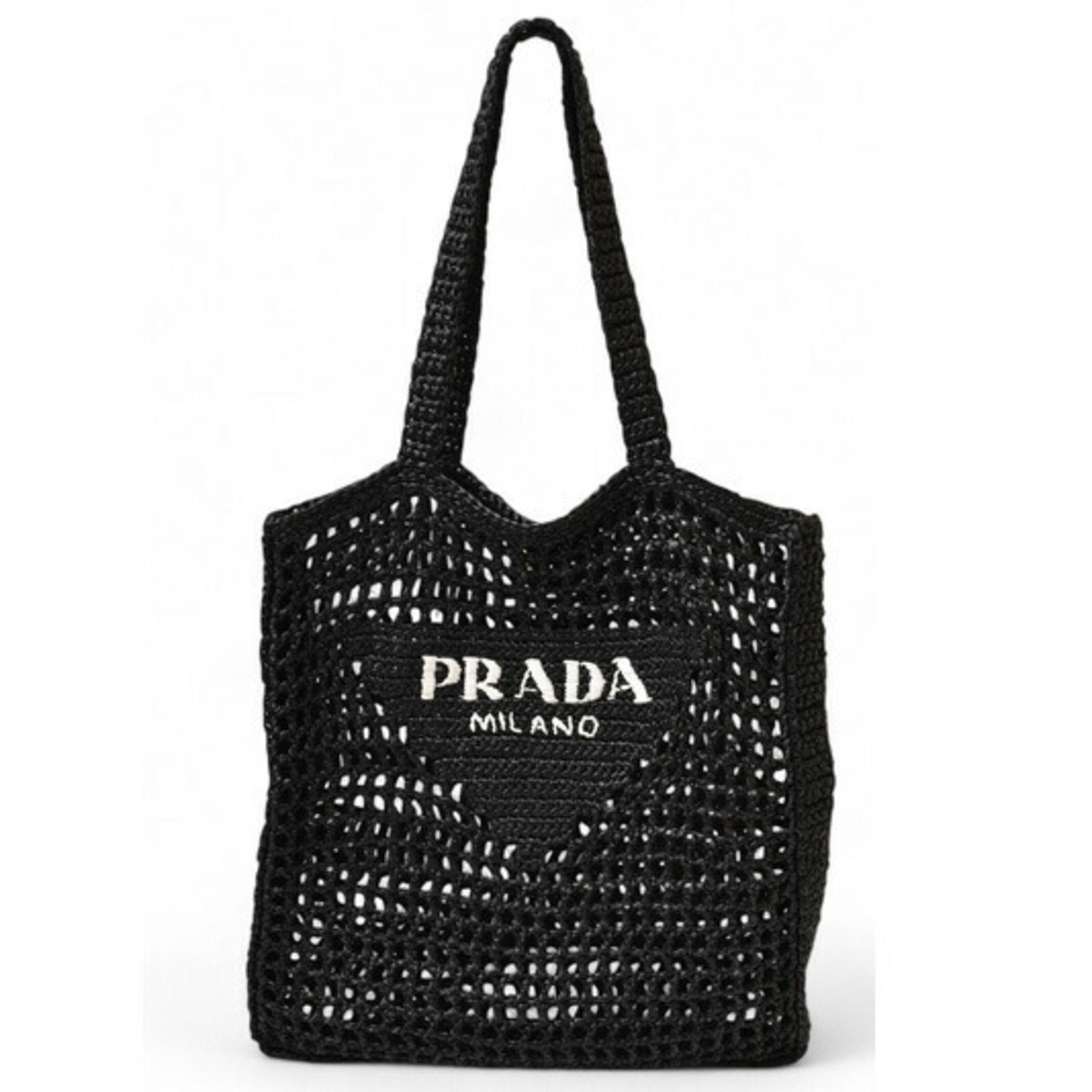 Prada Tote Bag PRADA Raffia Basket Black White 1BG393