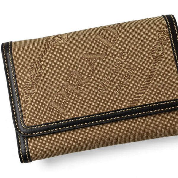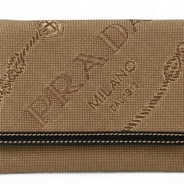 Prada Tri-fold Wallet 1M0510 Logo Jacquard Leather Beige Black