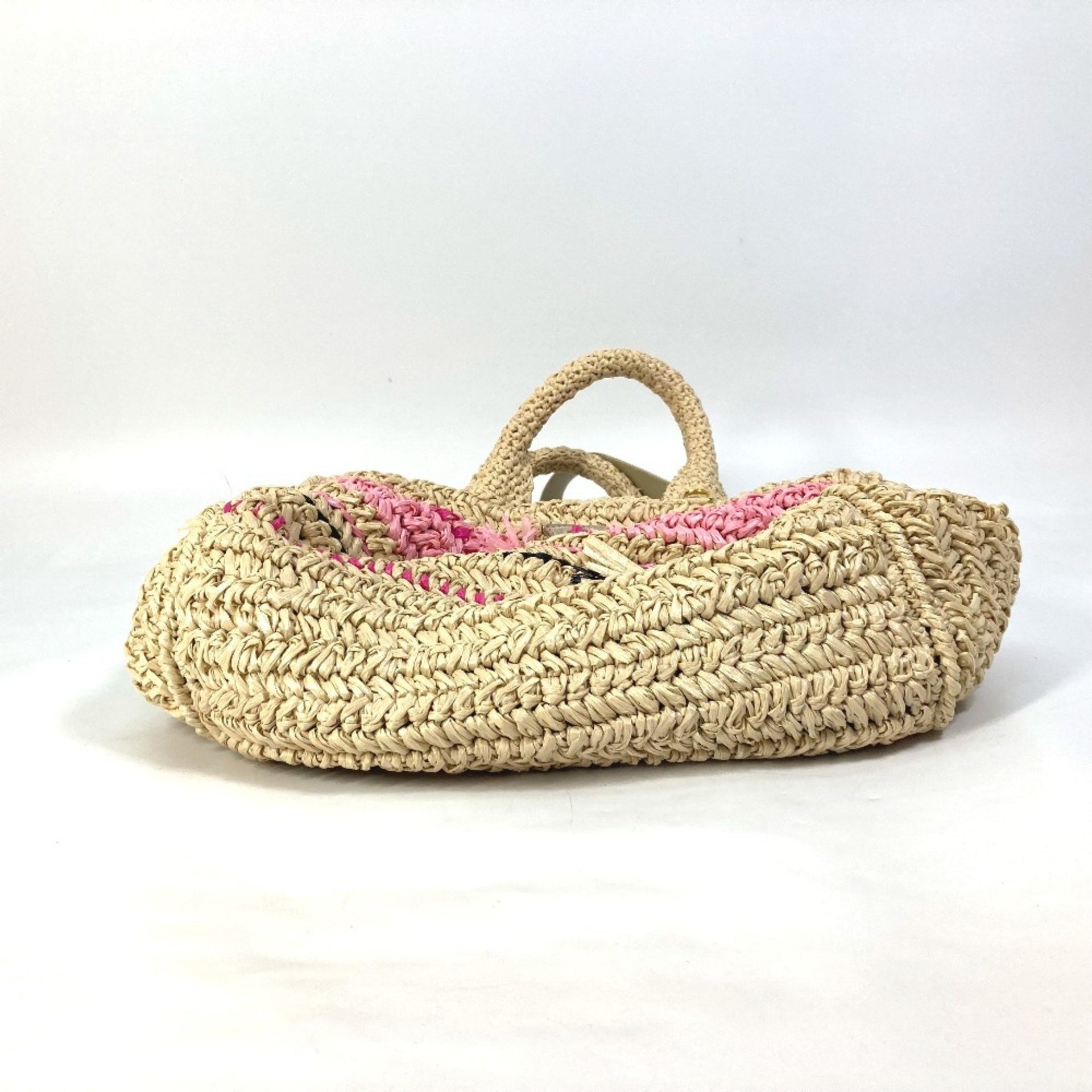 Prada Triangle Logo Canapa 2-Way Bag, Shoulder Handbag, Raffia, Women\'s, Beige