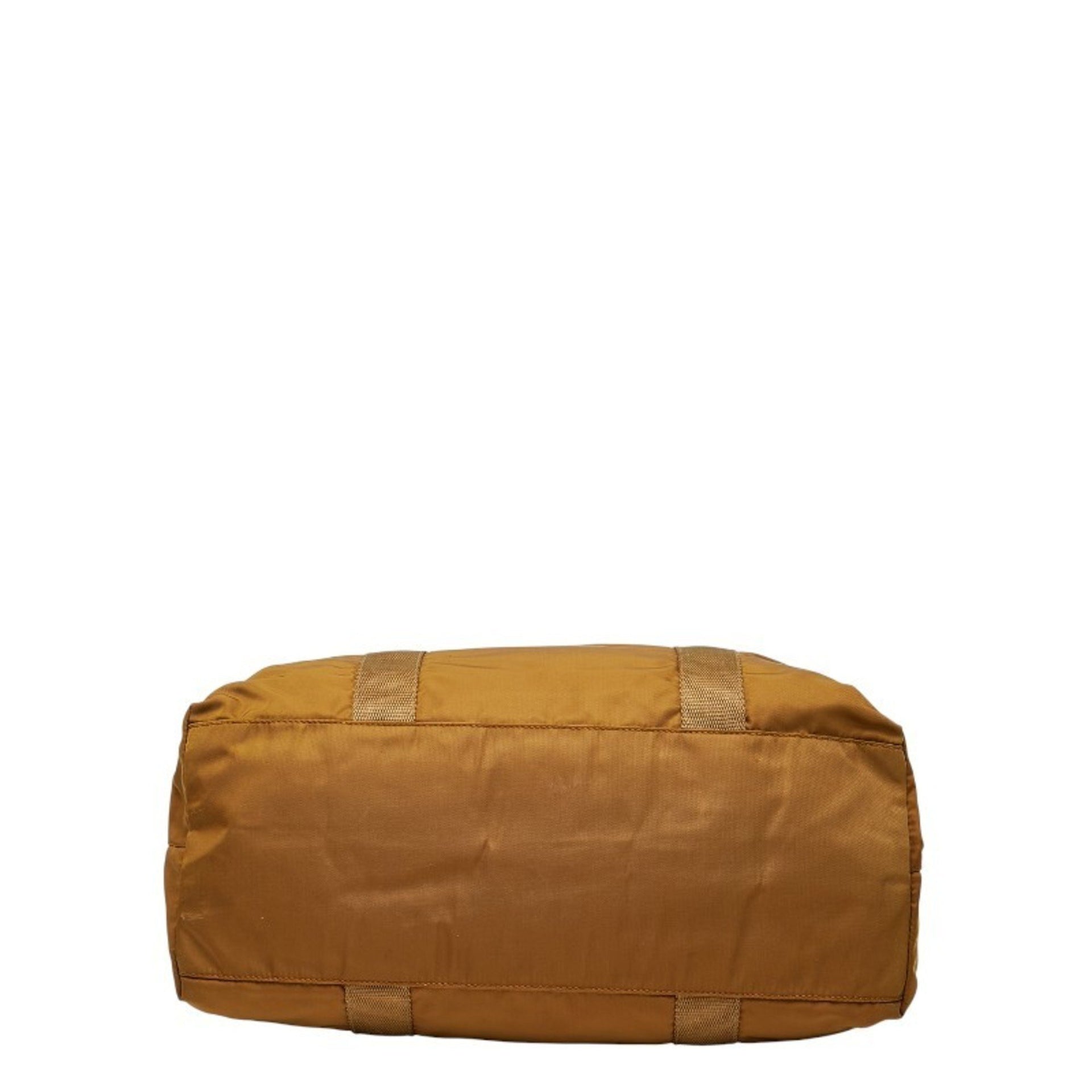 Prada Triangle Logo Plate Tote Bag Shoulder Brown Nylon Leather Women\'s PRADA