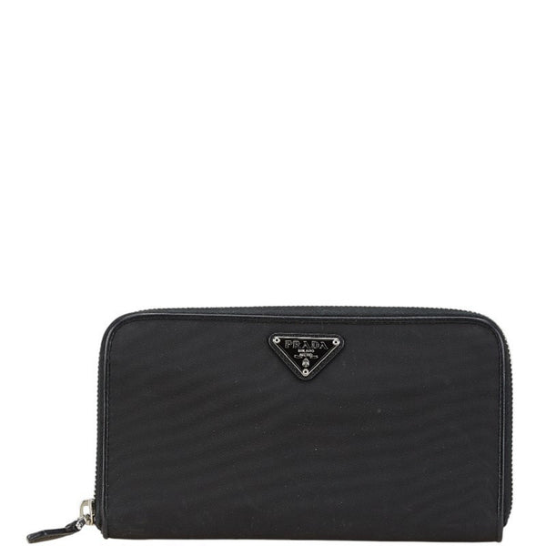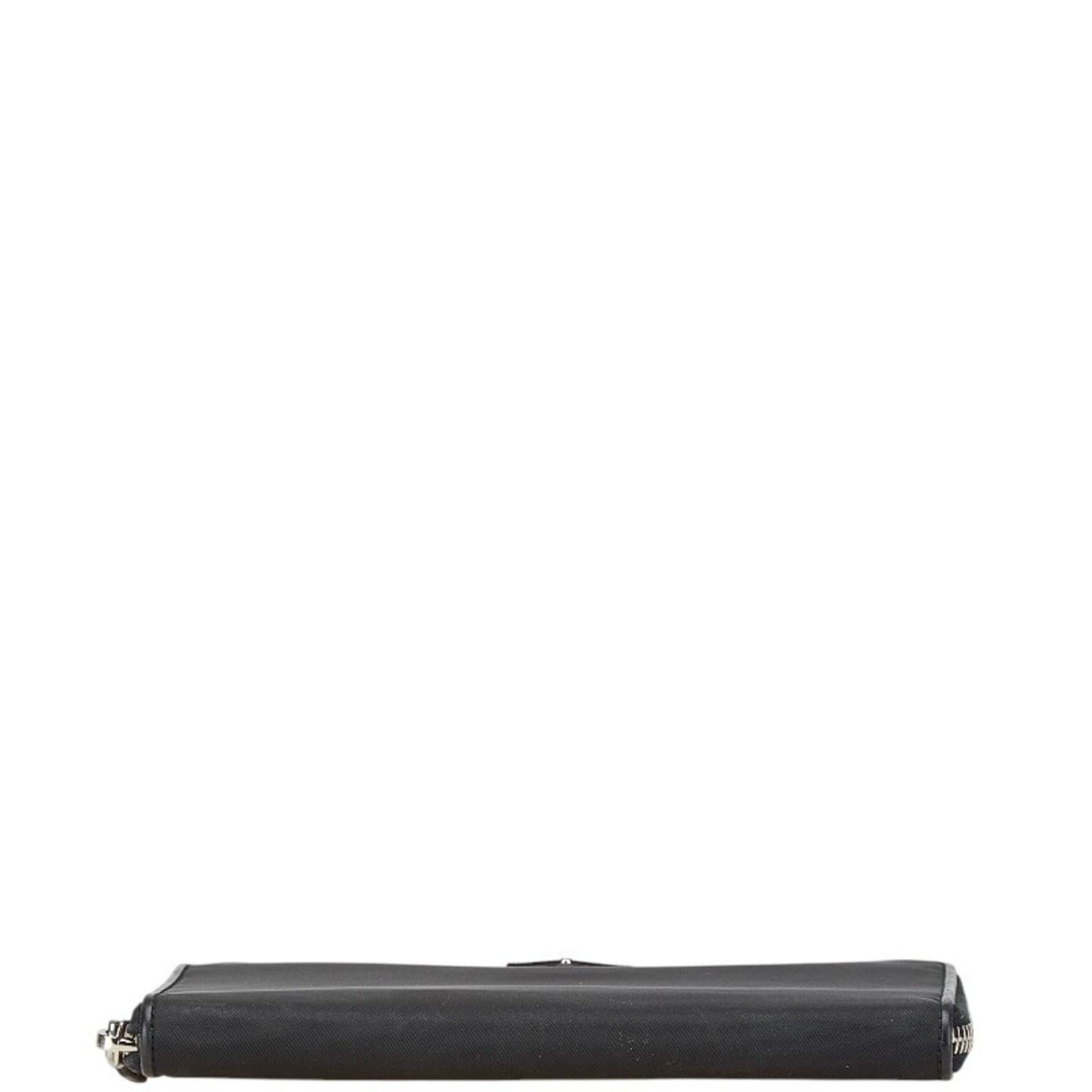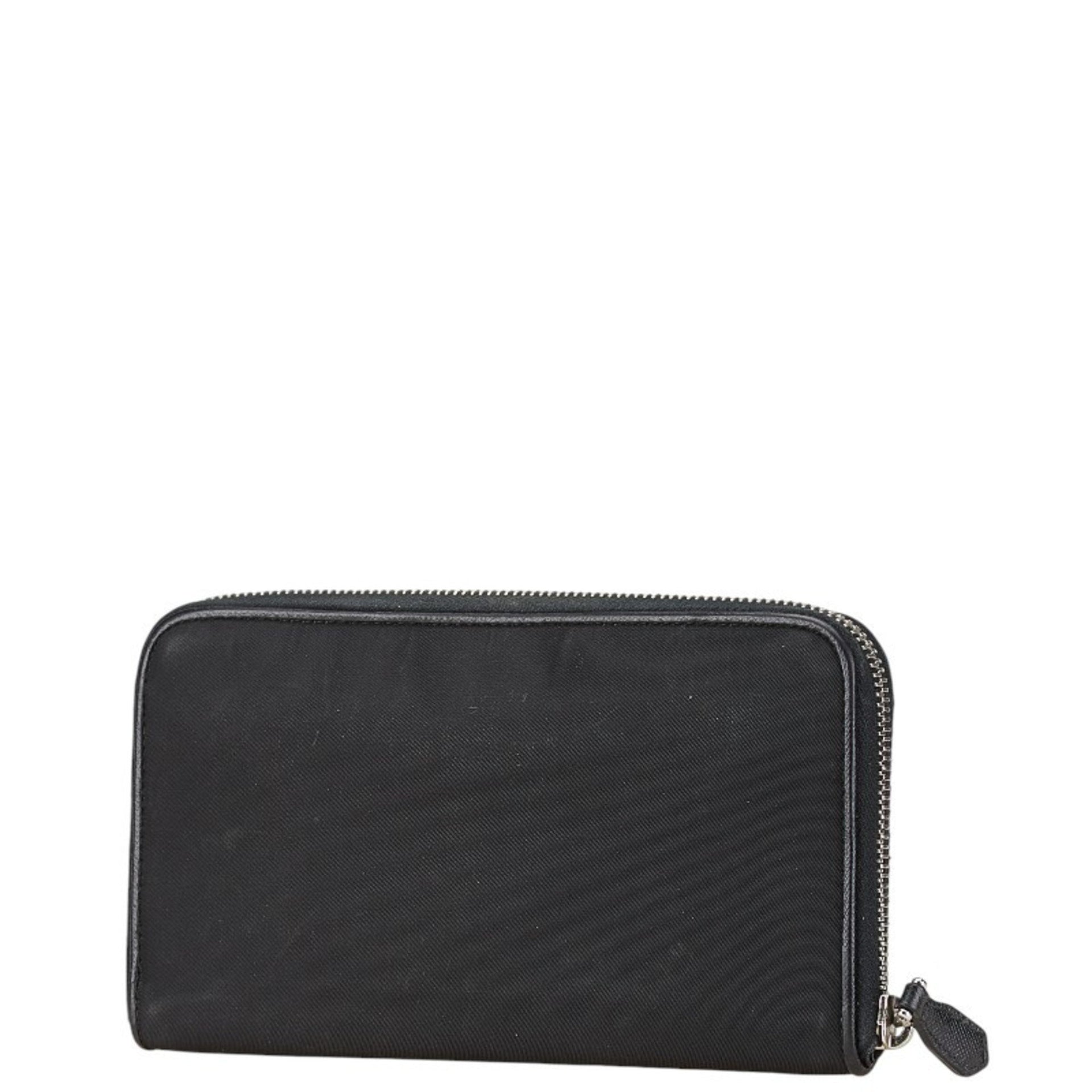 Prada Triangle Plate Long Wallet Black Nylon Leather Women\'s PRADA