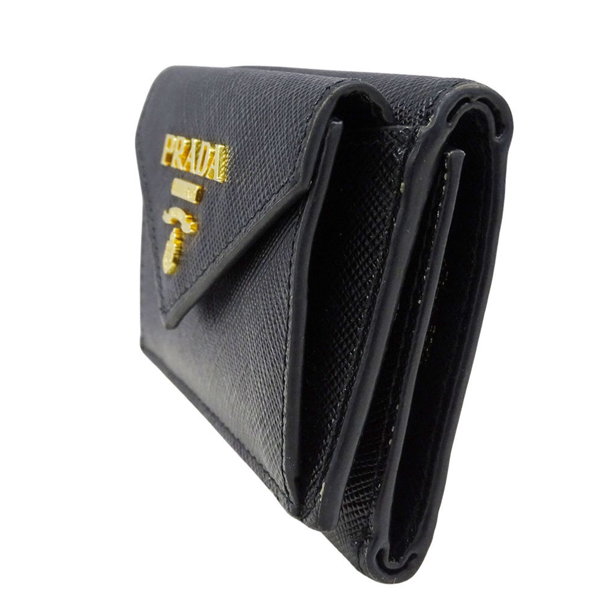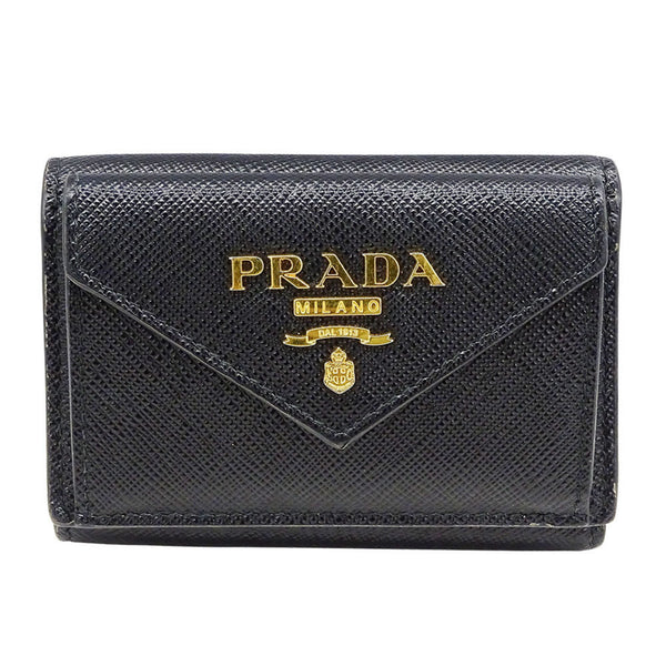 Prada Women\'s Saffiano Black Tri-fold Wallet (1MH021) Compact Mini