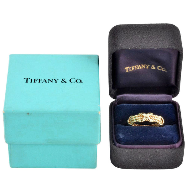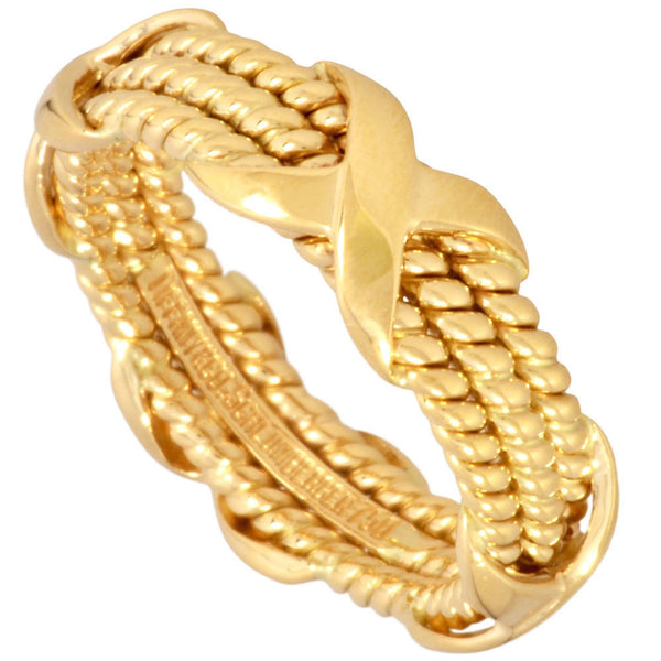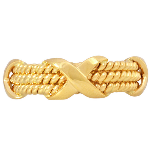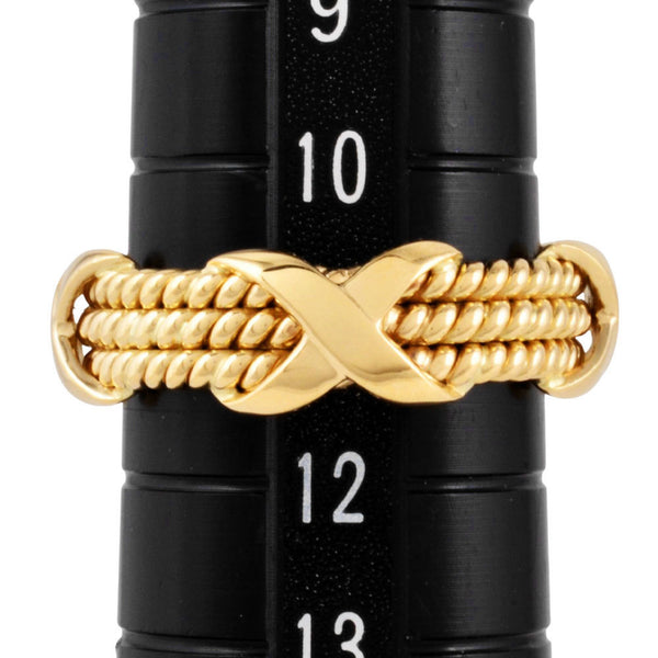 Tiffany & Co. 3 Row Twist 4 Cross Motif Ring, Size 11, 18KYG, 6.1g, Schlumberger