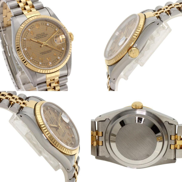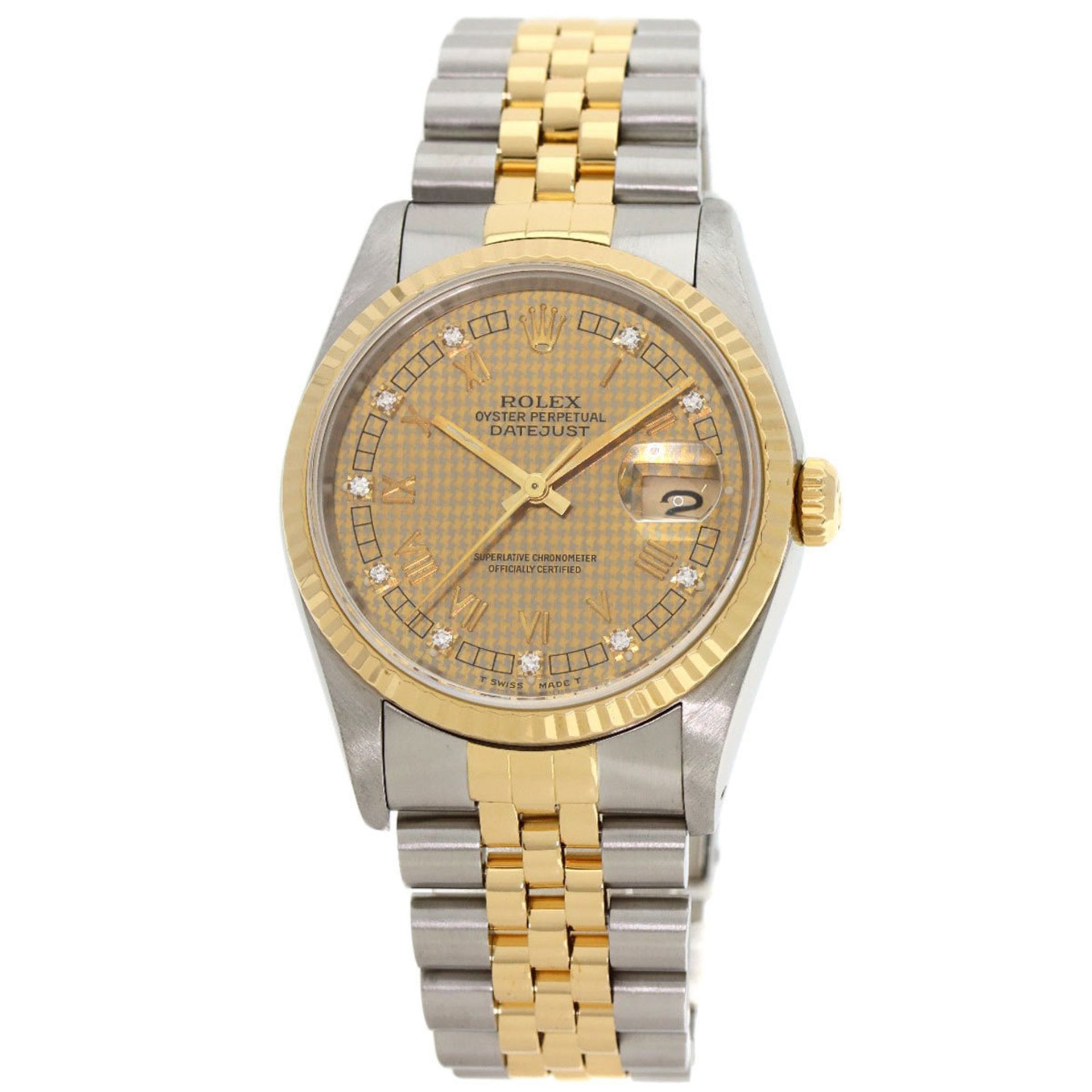 Rolex 16233G Datejust 10P Diamond Champagne Houndstooth Watch Stainless Steel SSxK18YG Men\'s ROLEX