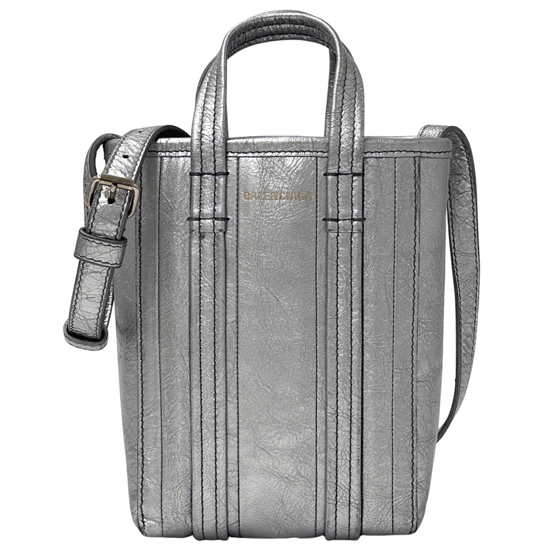 Balenciaga BALENCIAGA Women\'s Barb Phone Shoulder Bag, Leather, Silver, 693793, Pouch, Mini Small