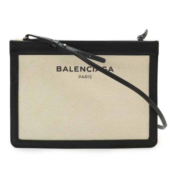 BALENCIAGA Navy Pochette Shoulder Bag/Clutch Bag in Canvas and Leather, Natural Black, 339937