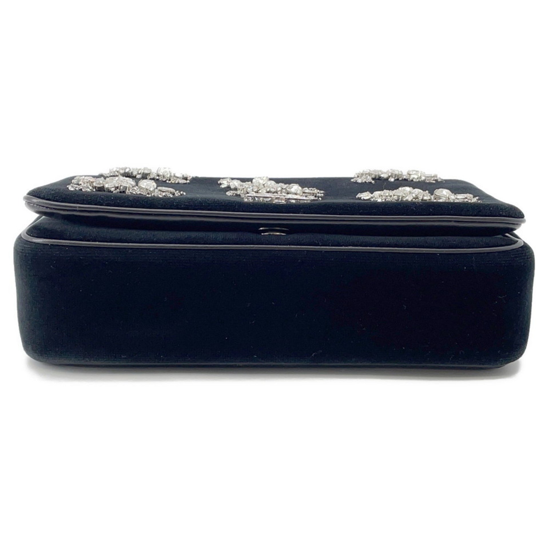 Burberry Chain Shoulder Bag LOLA Lola Velvet Rhinestone Black