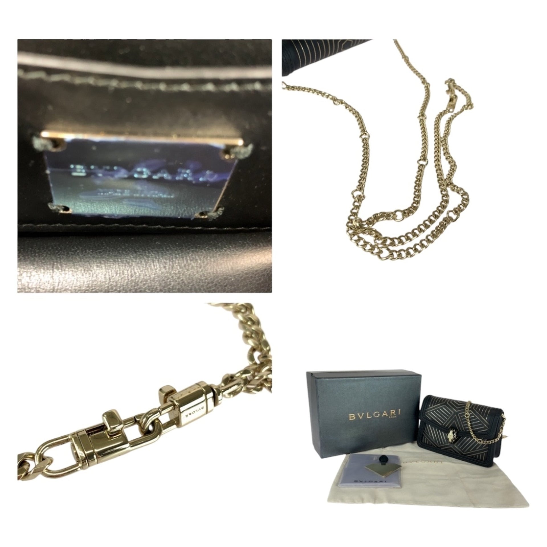BVLGARI Serpenti Diamond Blast Black/White with Gold Hardware and Leather Chain Shoulder Bag/Pochette for Women