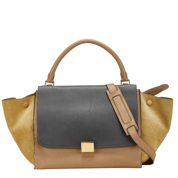Celine Trapeze Handbag/Shoulder Bag, 2-Way, Gray, Beige, Khaki, Leather, Suede, Women\'s, CELINE