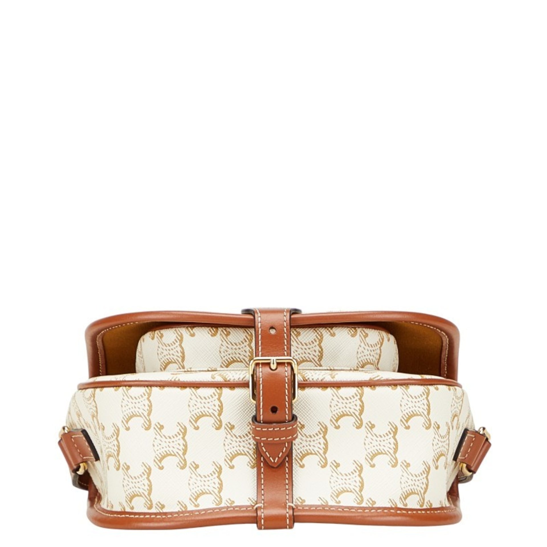 Celine Triomphe Crossbody Shoulder Bag in White and Brown Leather for Women