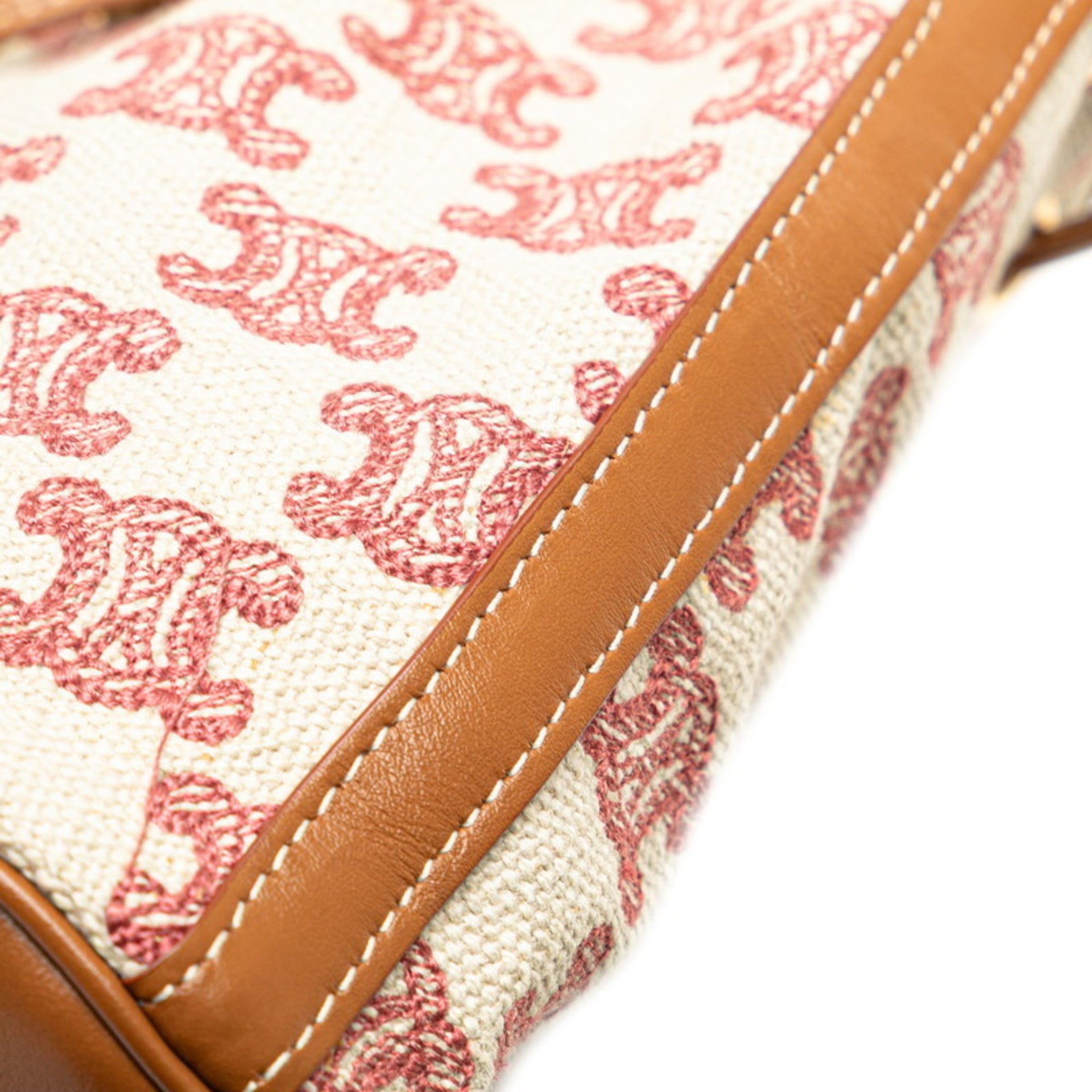 Celine Triomphe Shoulder Bag in Beige, Red, and Brown Canvas Leather for Women.