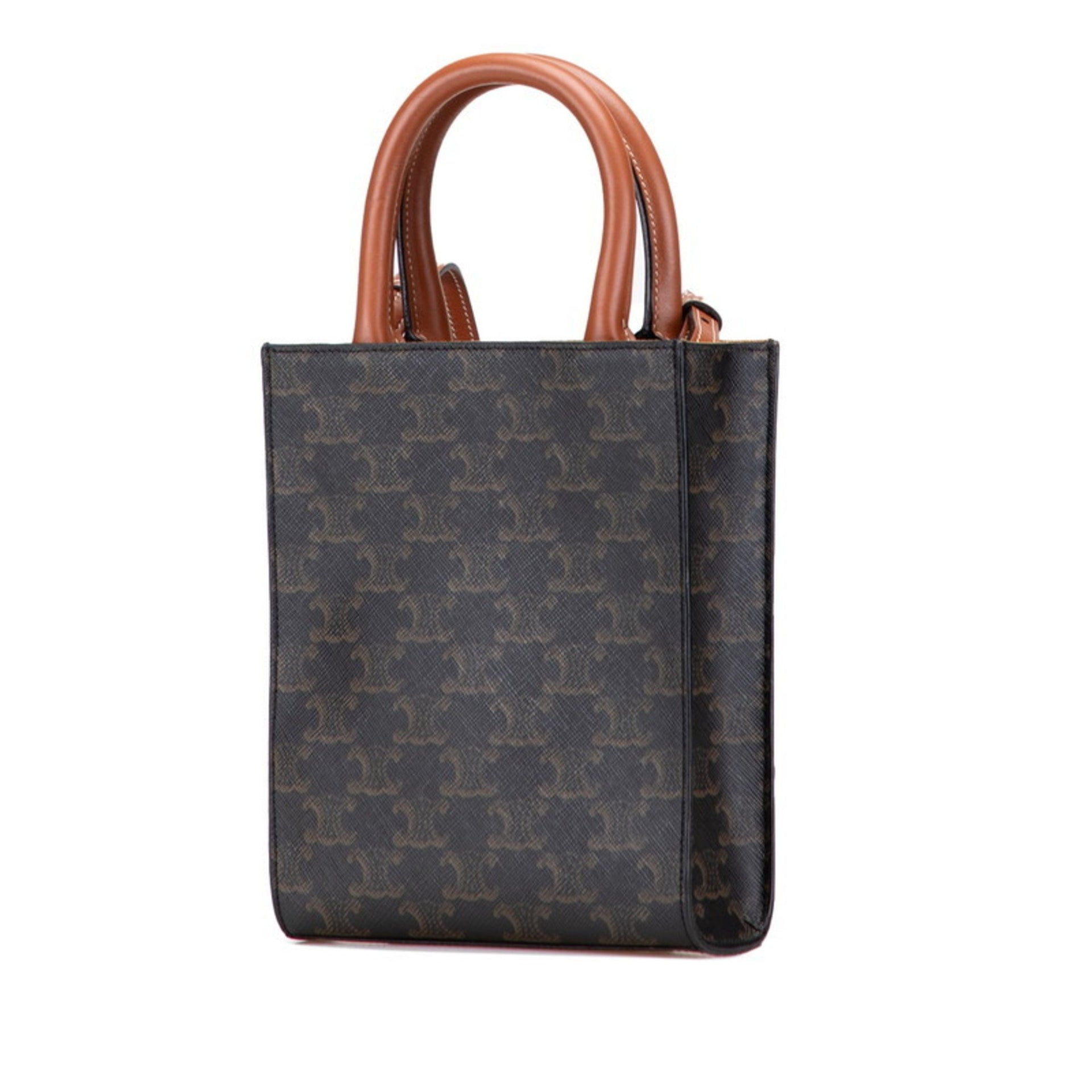 Celine Triomphe Vertical Cabas Mini Tote/Shoulder Bag, 2-Way, Black/Brown Leather, Women\'s, CELINE