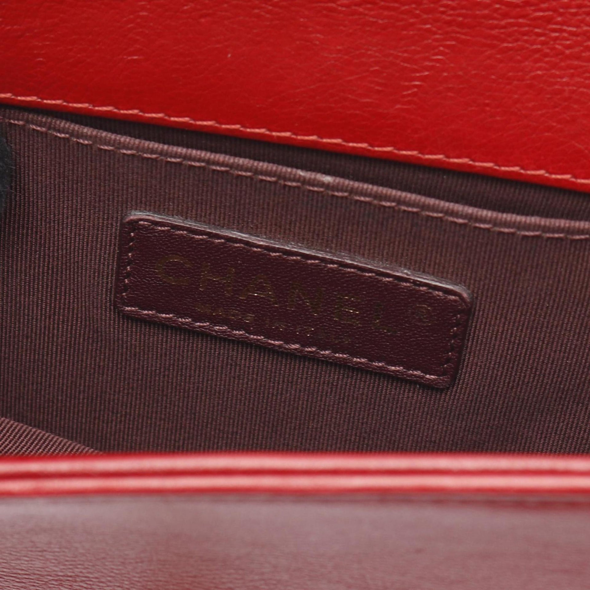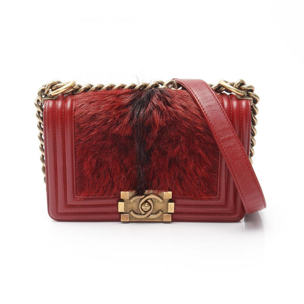 CHANEL Boy Chanel Small Shoulder Bag, Leather and Fur, Women\'s, Red, A67085