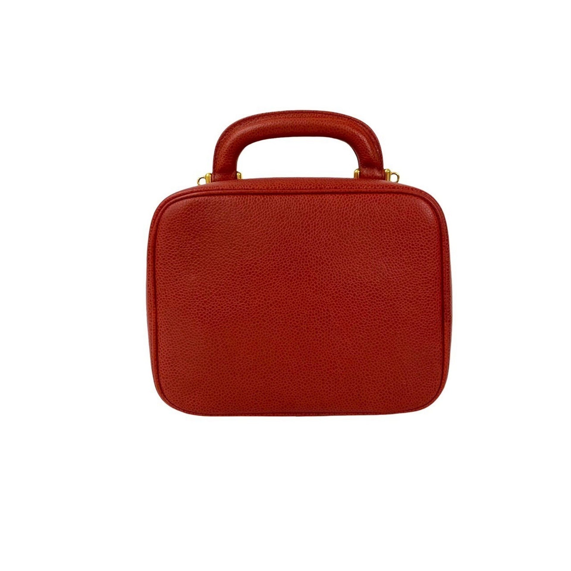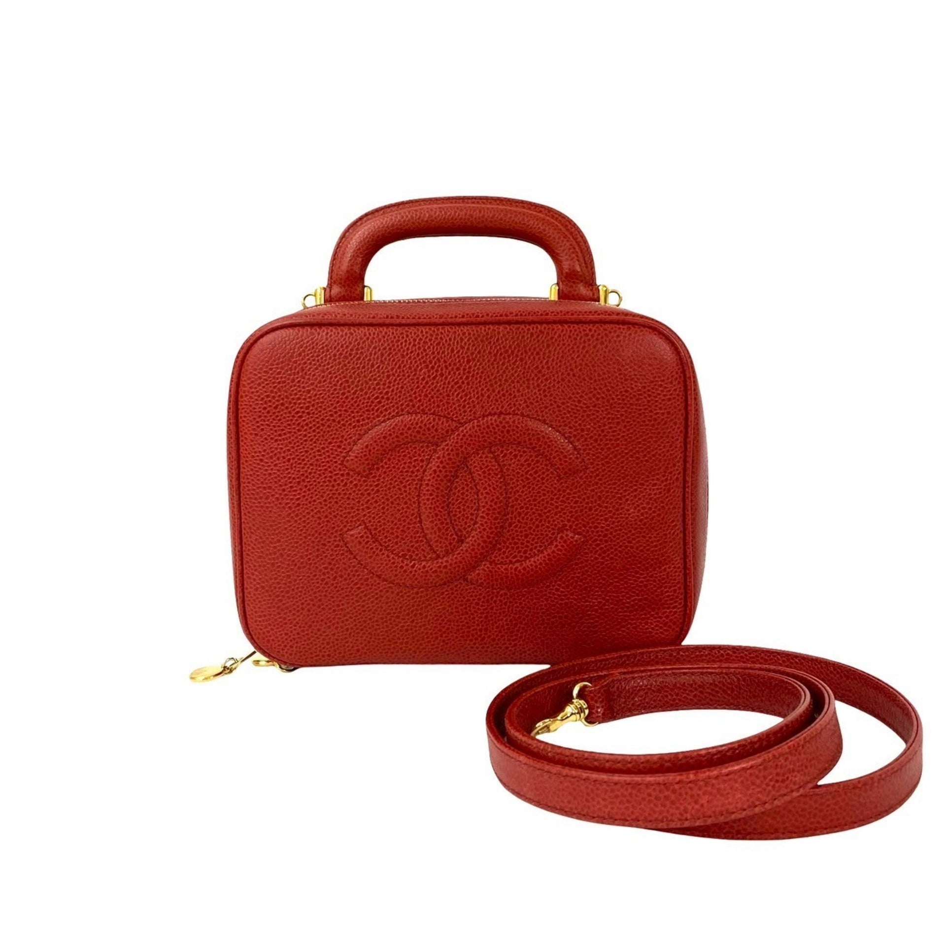 CHANEL Caviar Skin 2-Way Handbag/Shoulder Bag/Vanity Bag, Red, d12-8