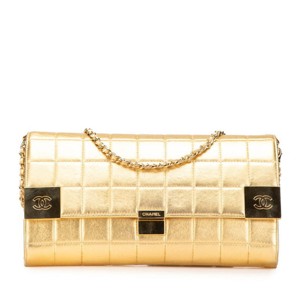 Chanel Chocobar Coco Mark Chain Shoulder Bag, Gold Lambskin, Women\'s, CHANEL
